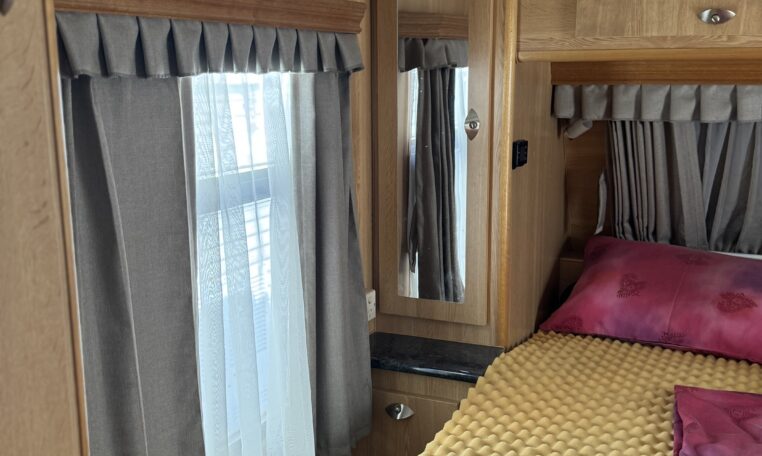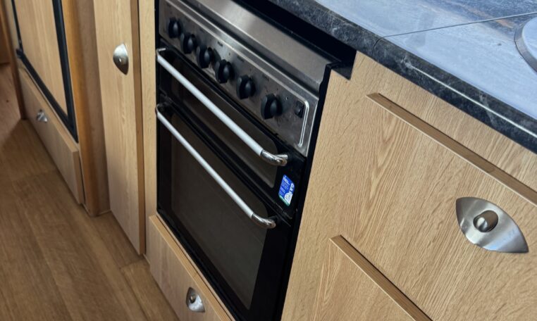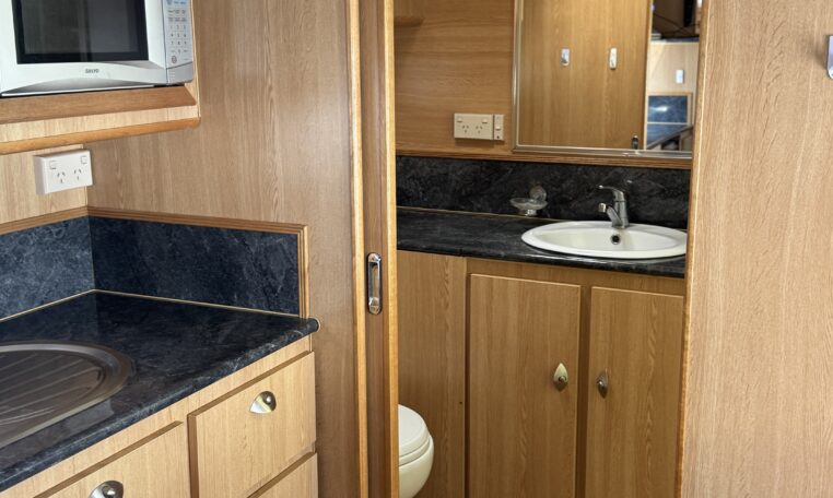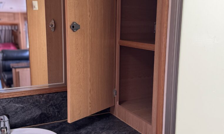 I’ve always thought the deep bathroom cupboard of the elegance was a HUGE plus for towels and linens and I love the etching on the cupboard glass in these vans. Timeless Elegance.